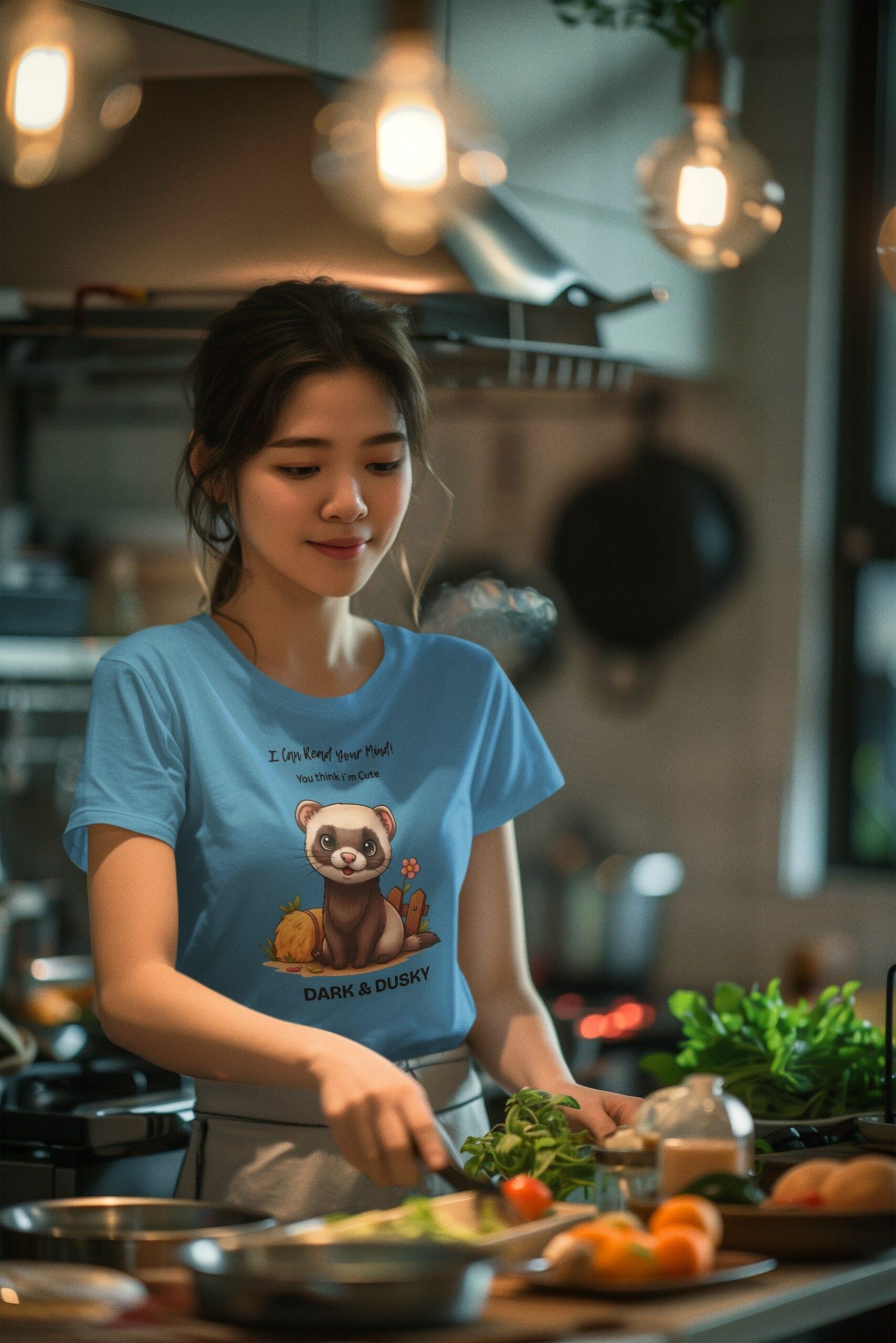 Crafted from soft, breathable cotton and shaped in a flattering women’s cut, this shirt is as cozy as it is charming. Featuring an irresistibly cute ferret illustration, it’s the perfect pick for animal lovers, pet moms, or anyone who embraces quirky joy.