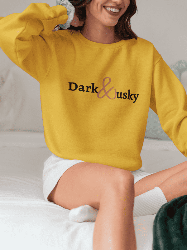This cozy mustard sweatshirt is perfect for any cat lover! Featuring a playful back-and-front cat theme and bold brand name lettering, it’s a fun and stylish addition to your wardrobe.
