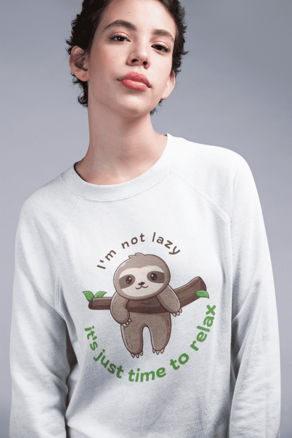 - Cozy women’s sweatshirt with a cute sloth print on the front.